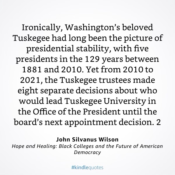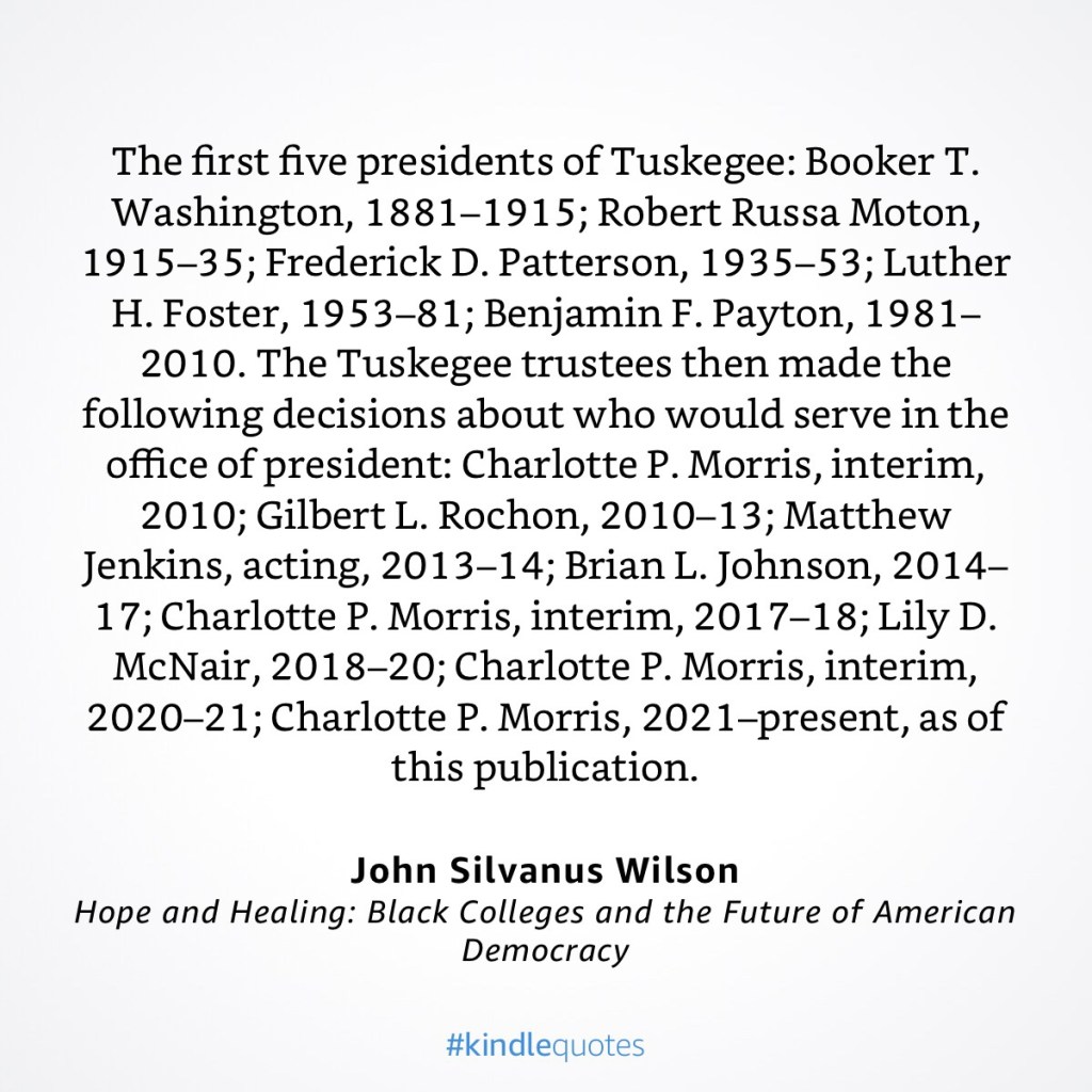 Delighted to have read his new book and listen to John Silvanus Wilson’s (former President of Morehouse College) panel on the same topic at this year’s CIC Council of Independent Colleges President’s Institute Conference: Hope and Healing: Black Colleges and the Future of American Democracy A very thorough discussion in the book on the legacies of Booker T. Washington, W.E.B. Du Bois, Tuskegee University (Institute) and the future of Black Colleges.